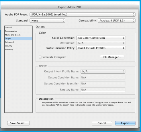 .Abaixo, clique on , save these PDF presets with whatever name you want, so you can always reuse it. Finalize by clicking .