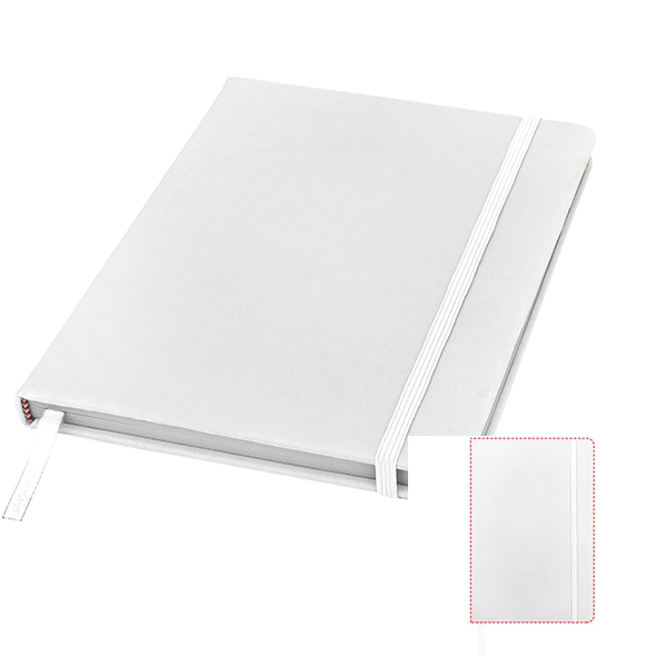 Customisable PVC Cover Notebook. Modern design. Made of durable PVC. Removable and customisable cover. Blank and black pages. Perfect for advertising or daily use.